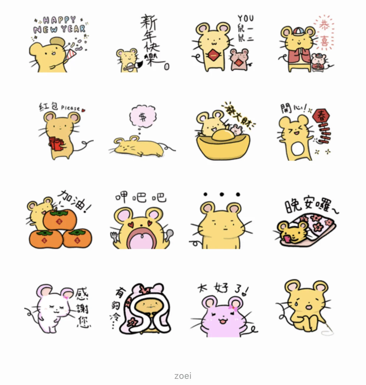 LINE is the main communication platform used in Taiwan & Japan. The stickers on LINE are very highly demanded, so I thought it would be fun to design my own set for Chinese New Years/Year of the Mouse.
